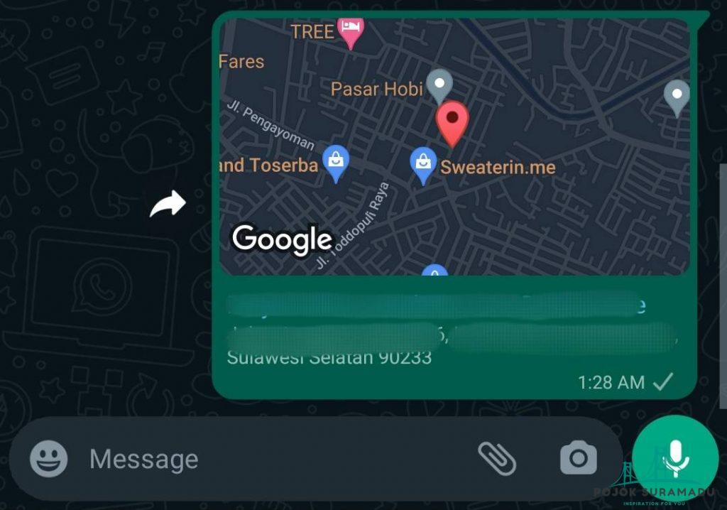 Saat kamu mengirimkan lokasi yang baru kamu tambahkan tersebut akan muncul preview atau thumbnail peta berlogo Google dan juga link judul atau nama lokasi di bawahnya. Keduanya akan mengarahkan ke aplikasi yang berbeda kalau dibuka.