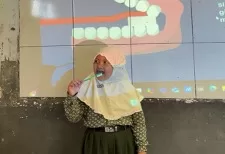 Kegiatan ini dilakukan pada 18 September 2025 dengan mengajak para siswa untuk mengikuti gerakan menyikat gigi yang benar menggunakan model gigi besar sebagai alat peraga.