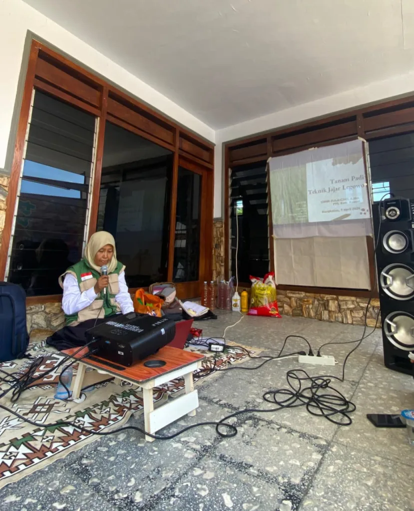 Kegiatan ini diawali dengan sesi edukasi mengenai teknik tanam yang disampaikan olehTim PPL Ibu Ummi meliputi pemilihan benih, pengolahan tanam, penanaman, pemeliharaan, dan panen. Pemilihan benih dapat menggunakan benih yang bersertifikat dan berkualitas unggul, salah satu yang dapat digunakan adalah Inpari 32. Selanjutnya dijelaskan mengenai tahap pengolahan tanah yang baik, seperti pembajakan, pemberian bahan organik, penggaruan, dan perataan lahan agar siap tanam. Materi juga mencakup teknik tanam jajar legowo dengan pengaturan jarak tanam yang tepat untuk meningkatkan pertumbuhan dan produktivitas tanaman.