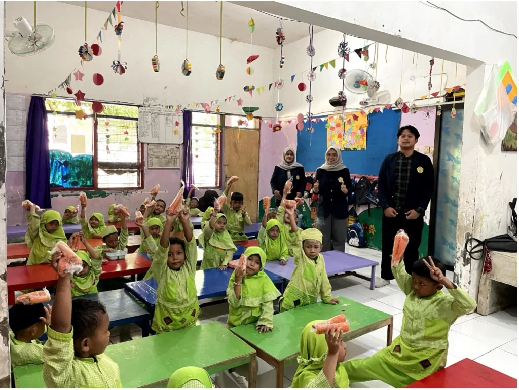 Anggota tim kegiatan, Niken Ayu dan Hanuun, menjelaskan bahwa edukasi semacam ini penting dilakukan agar anak-anak terbiasa dengan pola makan sehat sejak dini.