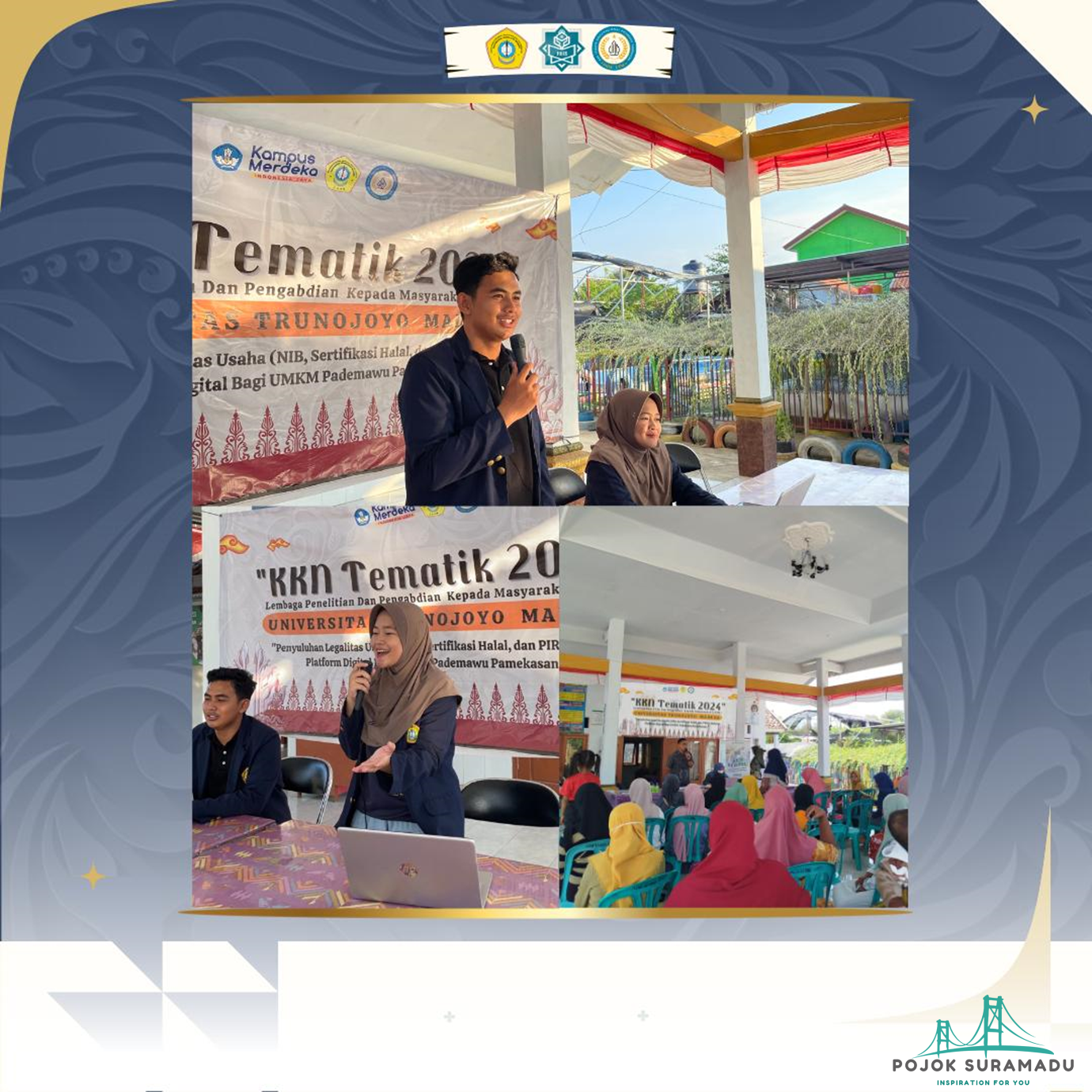 Pademawu Timur, 6 November 2024 – Dalam upaya mendukung pengembangan usaha mikro kecil dan menengah (UMKM), mahasiswa Kuliah Kerja Nyata Tematik (KKNT) dari Universitas Trunojoyo Madura (UTM) mengadakan penyuluhan terkait legalitas usaha, Nomor Induk Berusaha (NIB), sertifikasi halal, dan Pangan Industri Rumah Tangga (PIRT) bagi pelaku UMKM Desa Pademawu Timur. Acara ini berlangsung di Balai Desa Pademawu Timur pada hari Selasa, 6 November 2024, dengan partisipasi puluhan pelaku usaha lokal.